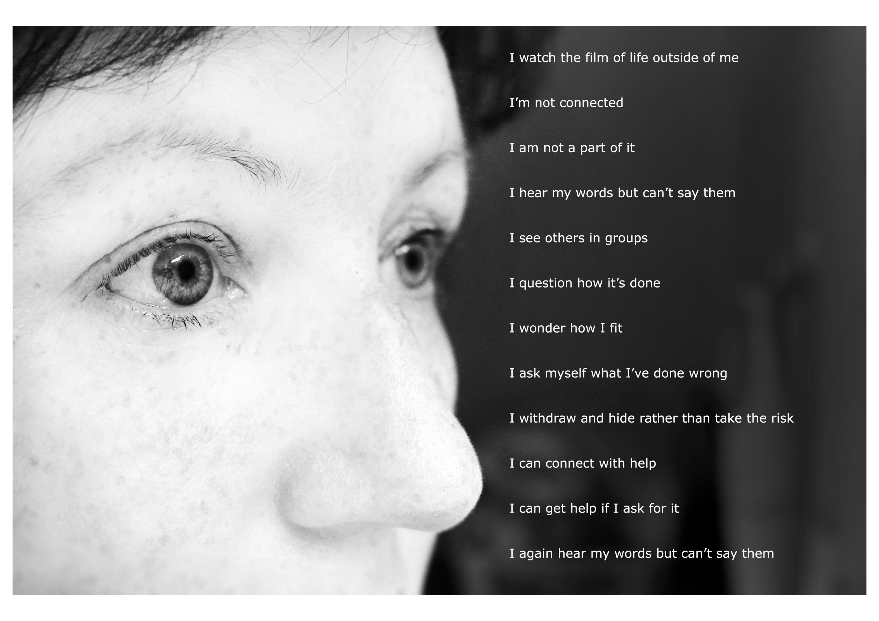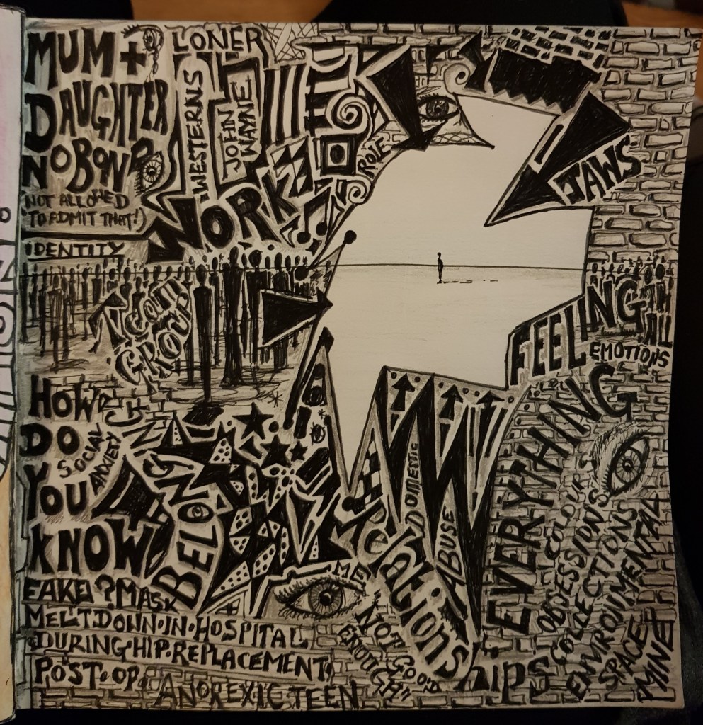 Responding through socially engaged practice has been a means for me to be heard, to have a voice, to counteract the past where I felt I had none. This is linked to the neurotypical world, where I have been labelled through a diagnostic process as neurodiverse and therefore not typical. Connecting to a societal group through constructed imagery, I am continuing to develop visual narratives that explore and challenge the division between those who seem to not be included in this neurotypical world. This work could be called activism for the greater good of seeking justice for those who are treated unjustly.